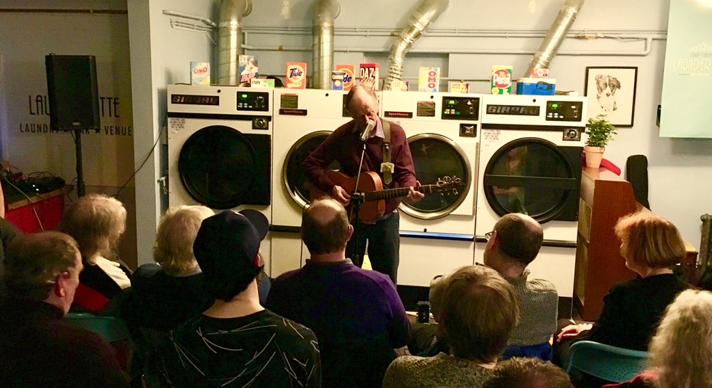 Three years ago and a day, we heard Martin Simspon play at the Old Cinema Launderette. On Thursday we were there again, this time to hear Martin Carthy. The venue has changed a bit in the interim - they've knocked down a wall to increase the performance space - but it's still unmistakably a working launderette: